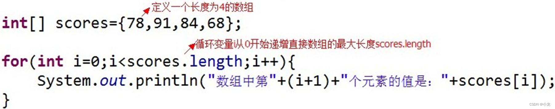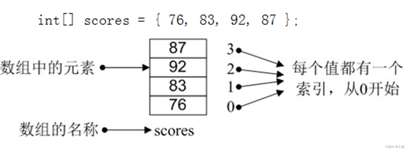 1、 数组下标从 0 开始。因此 scores[3] ,表示数组中的第 4 个元素,而并非第 3 个元素