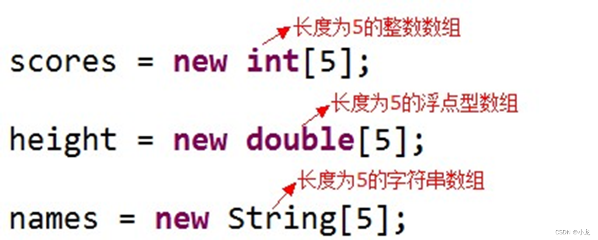 语法: 数组名 = new 数据类型 [ 数组长度 ];
