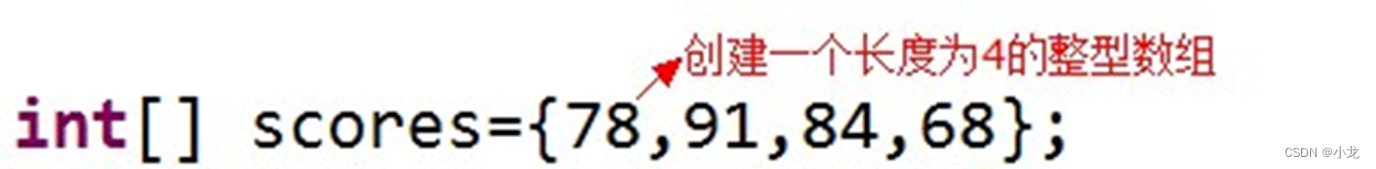 比如可以定义 int 型的数组 scores 存储 4 名学生的成绩