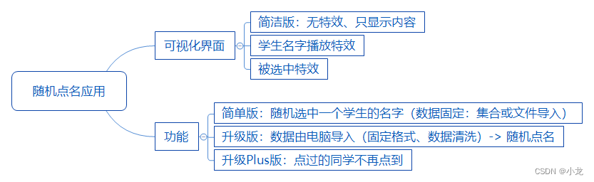 根据上面想实现的功能,可以将这个随机点名应用分为以下几个版本,逐步由简单到复杂来实现。