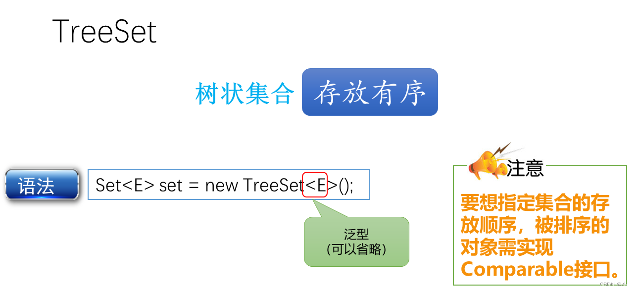 HashSet集合存储的元素是无序的和不可重复的,为了对集合中的元素进行排序,Set接口提供了另一个可以对HashSet集合中元素进行排序的类——TreeSet。