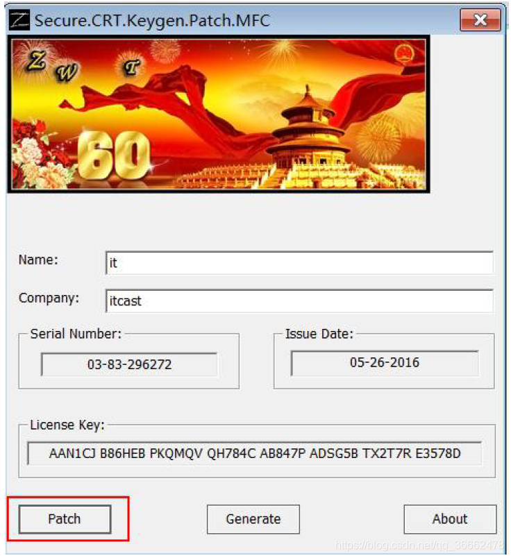 步骤2:以“管理员”运行“SecureCRT v7.0注册机.exe”激活程序,打补丁