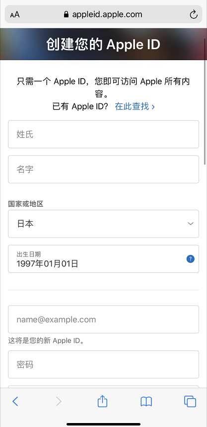 进入苹果官网拉到底点击→账户→管理你的Apple ID→创建Apple ID。这选择日本就可以啦,出生日期要大于18岁。