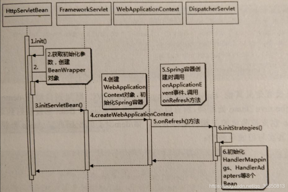 httpservlet初始化调用了HttpServletBean的init方法,作用时获取Servlet中的init参数,并创建一个BeanWrapper对象,然后由子类真正执行BeanWrapper的初始化工作。但是HttpServletBean的子类FrameworkServlet和DispatcherServlet都没有覆盖其initBeanWrapper(bw)方法,所以创建的Bean Wrapper对象没有任何作用,Spring容器也不是通过BeanWrapper来创建的。