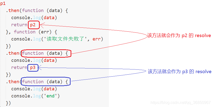 // 当 return 一个 Promise 对象的时候,后续的 then 中的 方法的第一个参数会作为 p2 的 resolve