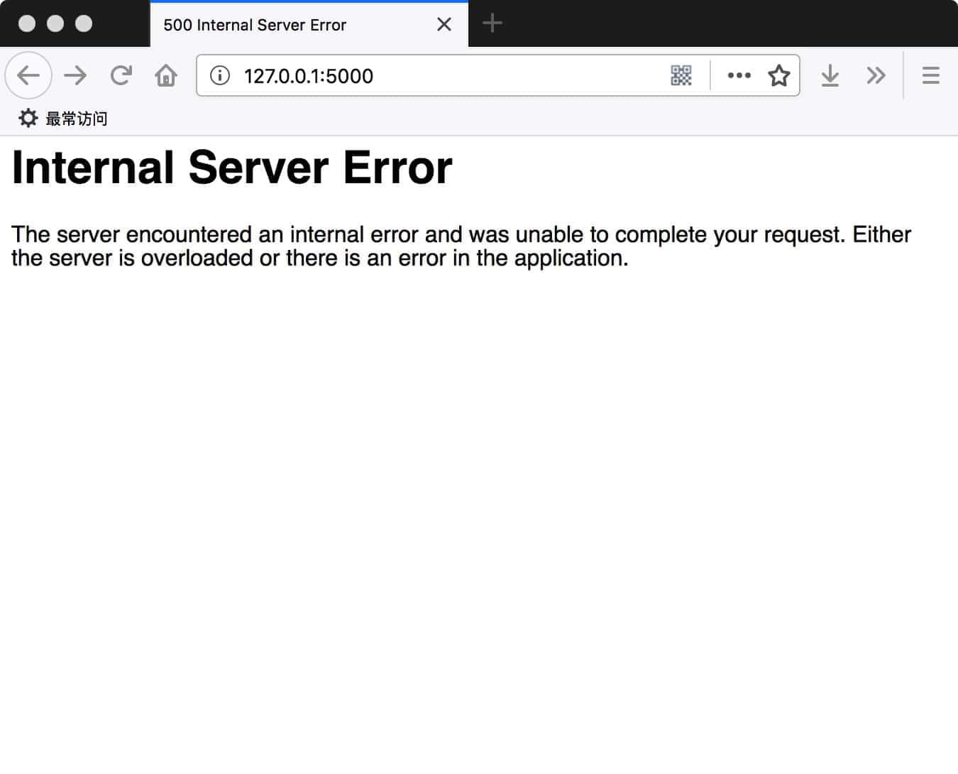 不过,当我们访问http://127.0.0.1:5000/时候却出现了500错误,浏览器显示: