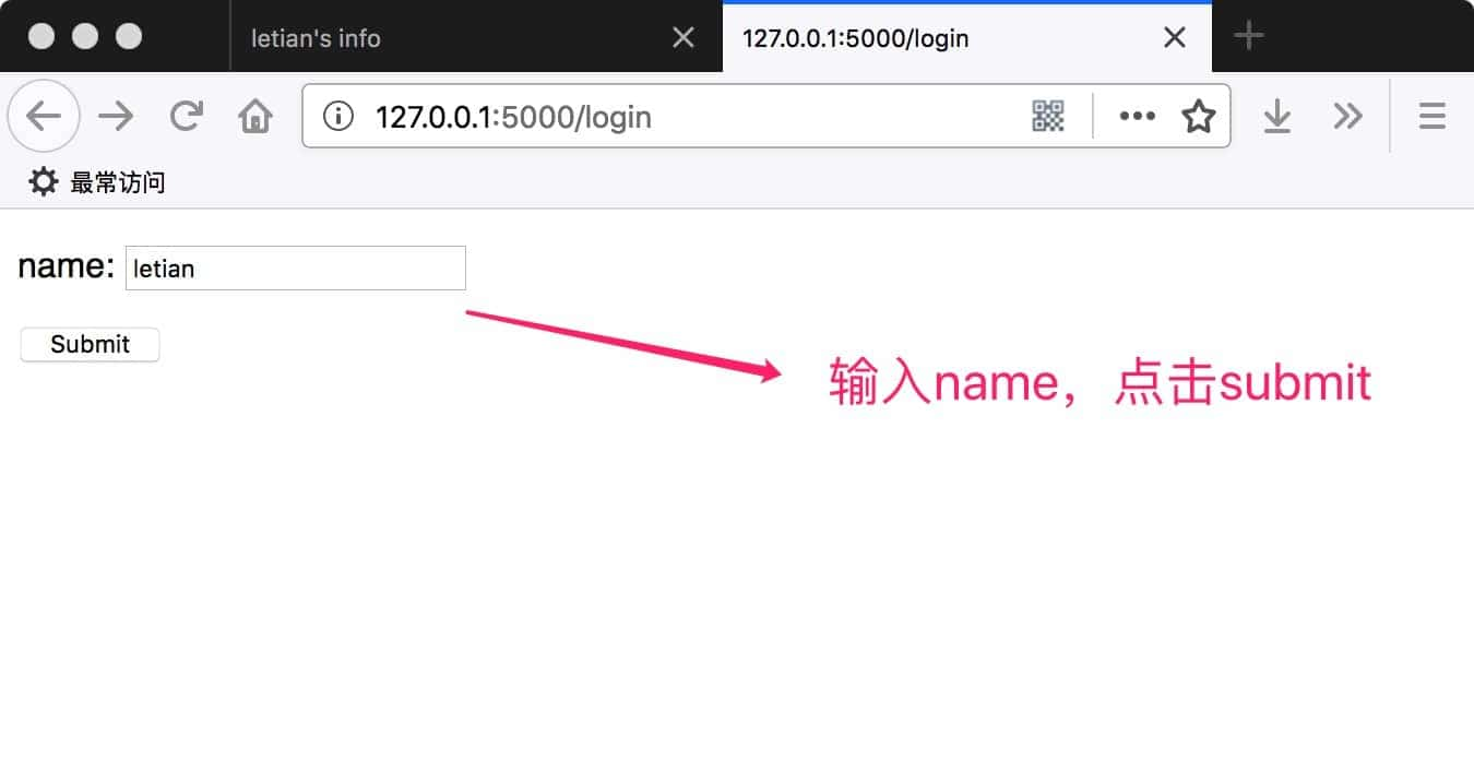 函数request.args.get的第二个参数用来设置默认值。此时在浏览器访问http://127.0.0.1:5000/,将显示: