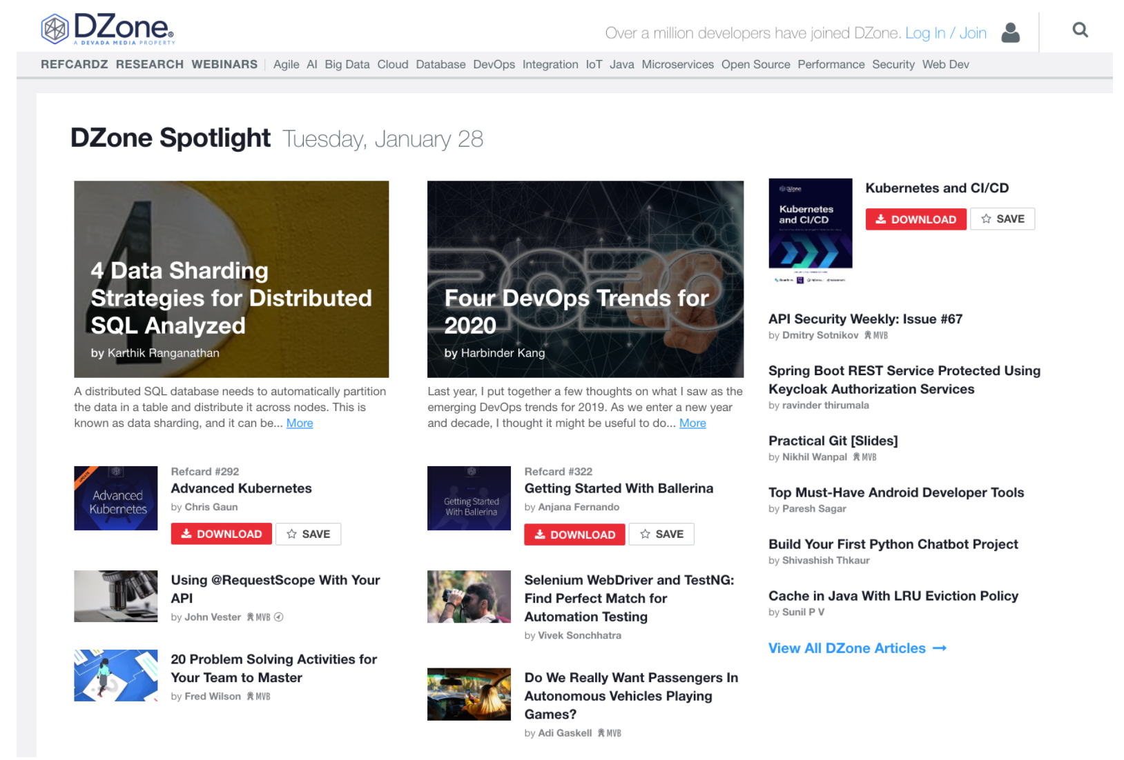 DZone 上会有 IT 前沿的新闻和文章,会有 AI、大数据、云、数据库、DevOps、IoT、Java 还有开源项目