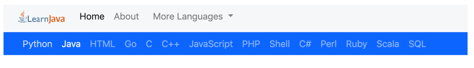 这也是一个教程网站,不仅仅只有 Java 的学习,也包括 Python、HTML、GO、C 和 C++ 等编程语言的学习,非常不错,你值得拥有