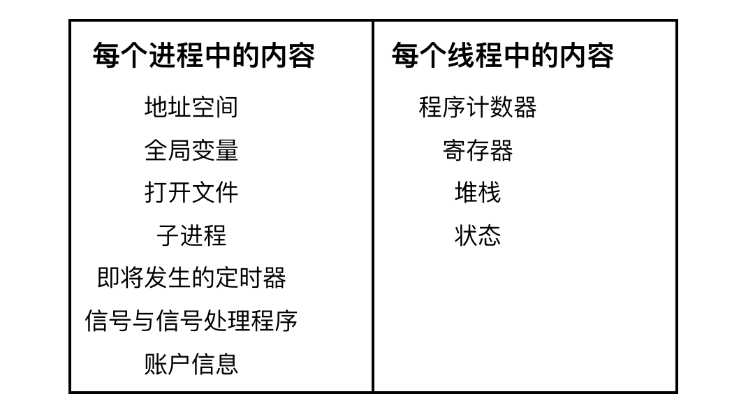 线程会共享进程范围内的资源,例如内存和文件句柄,但是每个线程也有自己私有的内容,比如程序计数器、栈以及局部变量。下面汇总了进程和线程共享资源的区别