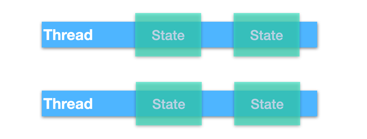 其实这是一种假象,线程数量并不等于 CPU 数量,单个 CPU 将在多个线程之间共享 CPU 的时间片,在给定的时间片内执行每个线程之间的切换,每个线程也可以由不同的 CPU 执行,如下图所示