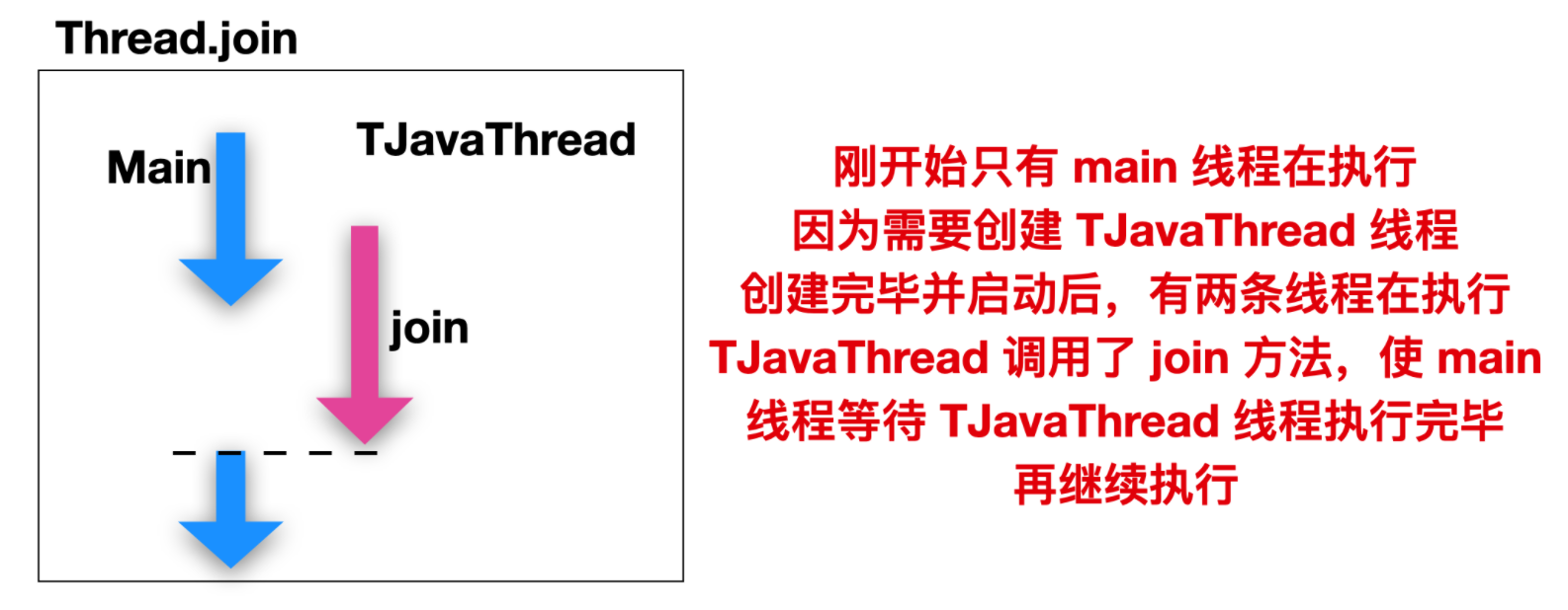 一个线程可以在其他线程上调用 join() 方法,其效果是等待一段时间直到第二个线程结束才正常执行。如果某个线程在另一个线程 t 上调用 t.join() 方法,此线程将被挂起,直到目标线程 t 结束才回复(可以用 t.isAlive() 返回为真假判断)。