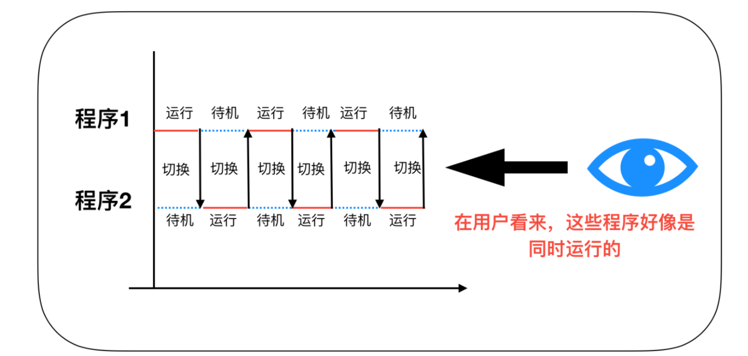 操作系统实现多个程序同时运行解决了单个程序无法做到的问题,主要有下面三点