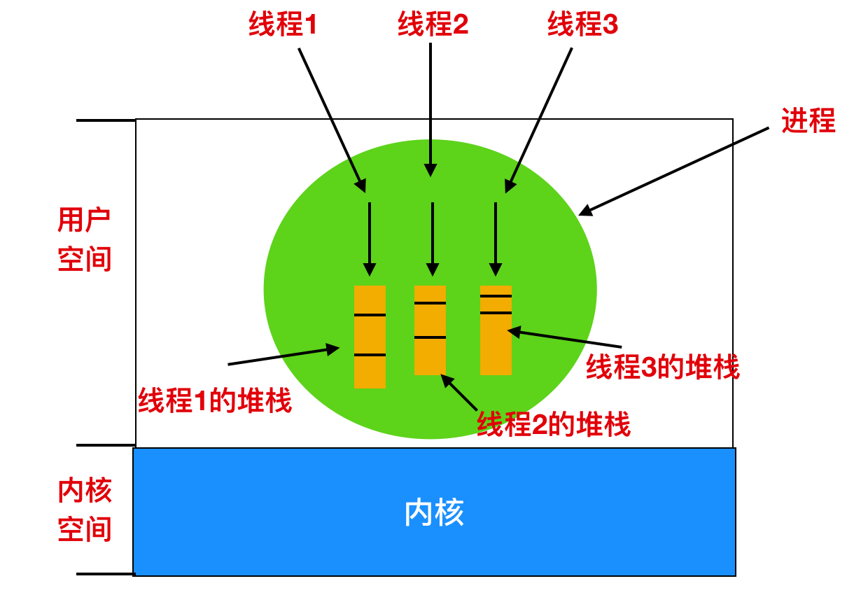 每个线程都有自己的栈空间,这是线程私有的,还有一些其他线程内部的和线程共享的资源,如下所示。