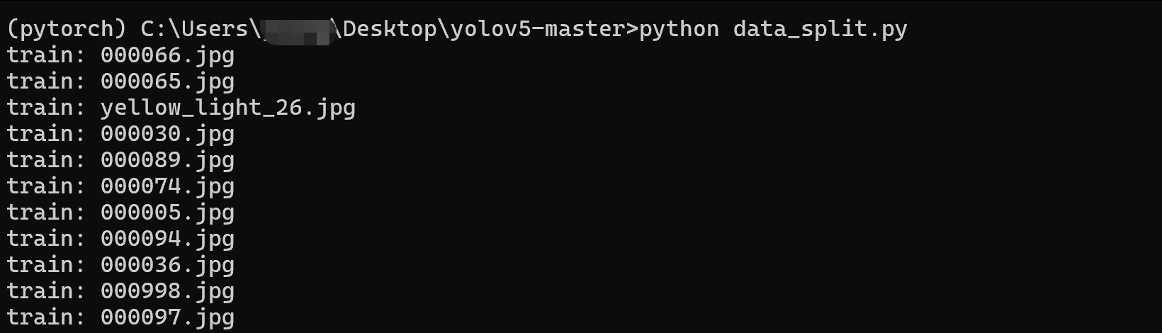 3、打开命令提示符(cmd),切换至yolov5-master目录下,运行data_split.py文件。
