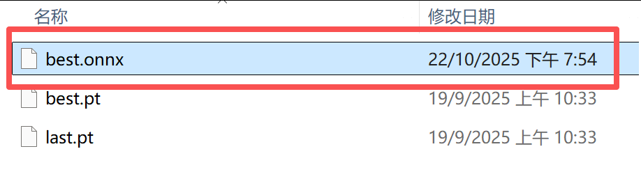 python export.py --weights=runs/train/exp/weights/best.pt --include=onnx