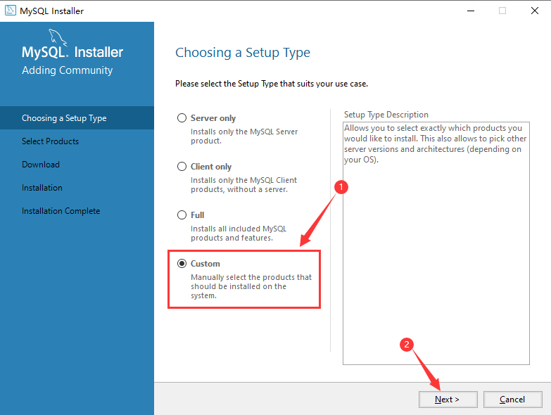1. 点击下载的安装包,进入安装引导页。点击“Custom”自定义安装,再点击“Next”。