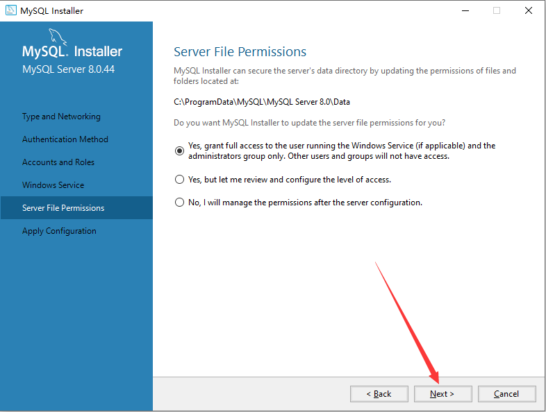6.选择“Use Legacy Authentication Method (Retain MySQL 5.x Compatibility)”,然后点击Next。