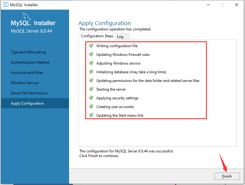 11.等待全部为绿色的√后,说明安装成功。然后点击Finish。