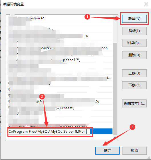 3. 将MySQL安装目录中的bin目录加入到path中。