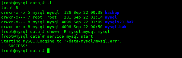 [root@mysql ~]# chown -R mysql:mysql /data/backup/