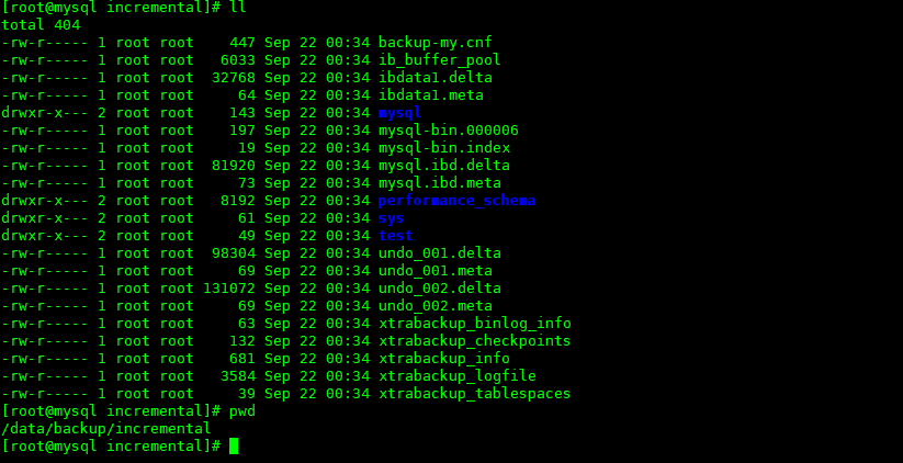 [root@mysql incremental]# mkdir -p /data/backup/incremental2