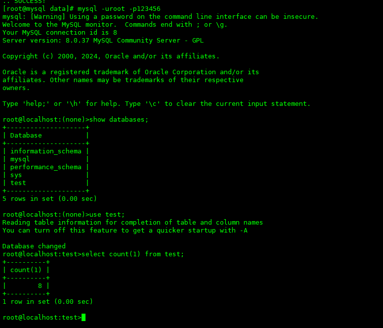root@localhost:(none)>source /data/backup/db_2024-09-22/recoverdata.sql