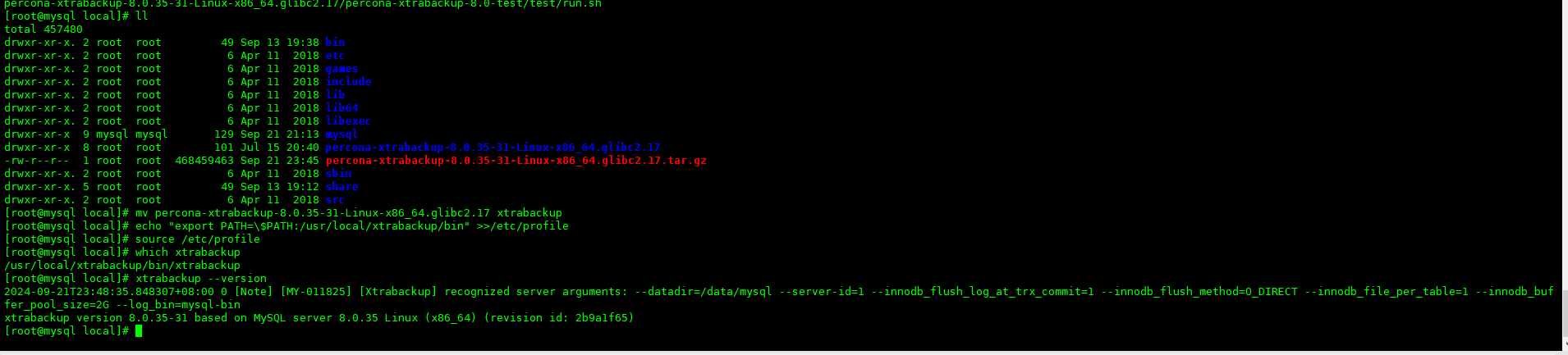 [root@mysql local]# mv percona-xtrabackup-8.0.35-31-Linux-x86_64.glibc2.17 xtrabackup