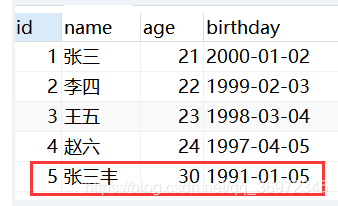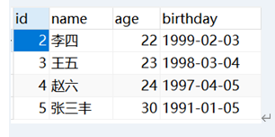 System.out.println(rs.getInt("id")+"\t"+rs.getString("name")+"\t"+rs.getInt("age")+"\t"+rs.getDate("birthday"));