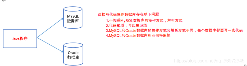 在JDBC出现之前,Java语言要操作数据库,我们需要掌握具体的编程方式。而针对不同的数据库(MySQL、Oracle等),连接的方式会有较大差异,学习成本较高,数据库的切换也比较繁琐,改动较大。