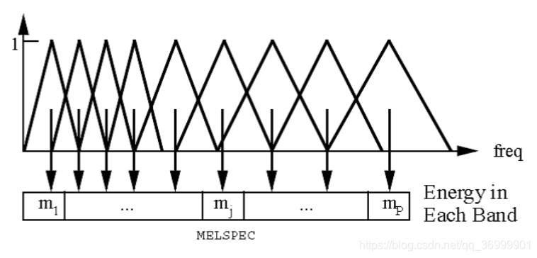 从频率变换到梅尔频率可以通过一组三角滤波器实现:
