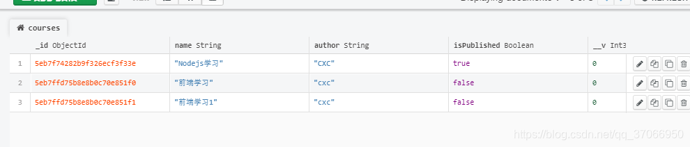 Course.create({name:'前端学习1', author: 'cxc', isPublished: false})