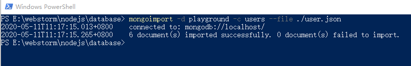 - 使用mongoimport –d 数据库名称 –c 集合名称 --file 要导入的文件位置以及名称;