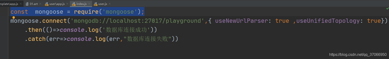 .catch(err=>console.log(err,'数据库连接失败'))