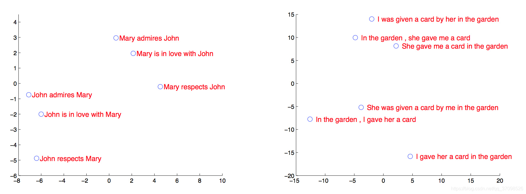 输入原文序列,将最后一个时刻的隐藏层向量PCA降维后可视化: