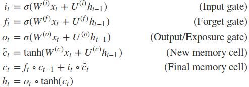 的属性。 - Input Gate 使用当前词语和之前的隐状态决定当前词语是否值得保留来gate新记忆,这个“是否”是通过