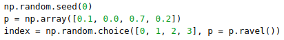 ,则选取索引“i”的概率为16%,可以使用np.random.choice: