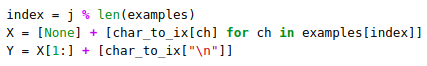 X = [None] + [char_to_ix[ch] for ch in examples[index]]