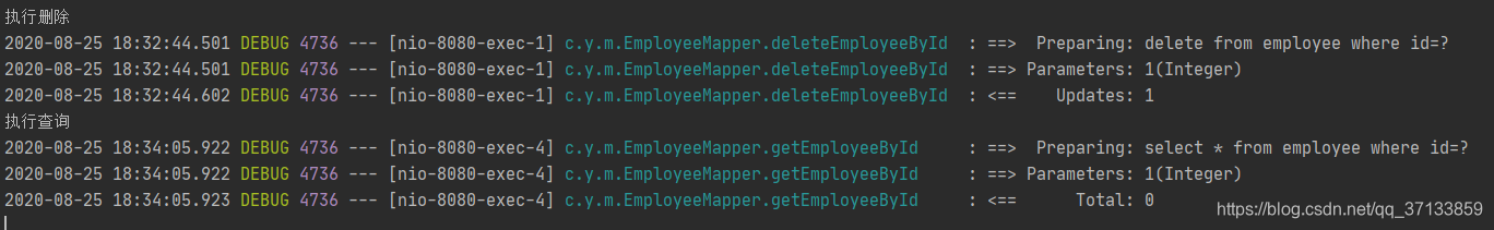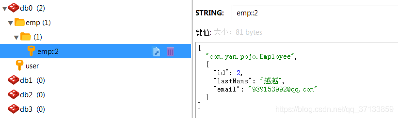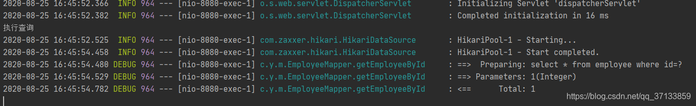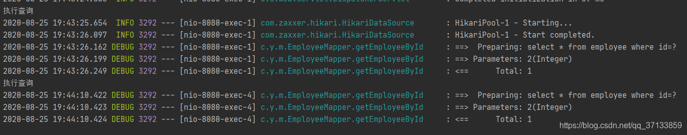 再次查询id为1的用户,请求 localhost:8080/emp/1