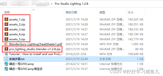 1.下载之后解压缩,会有以下文件(红框内为主体):