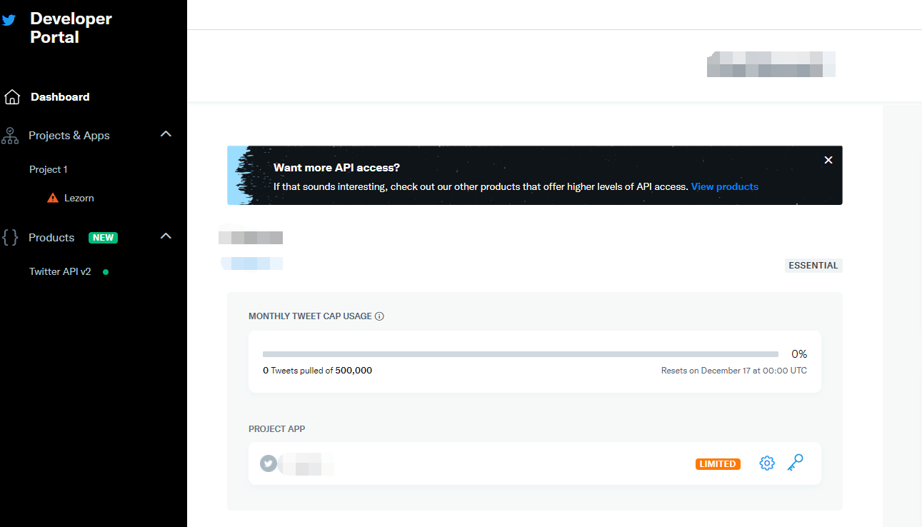 主要用来介绍推特开发者账号的 elevated academic 权限如何申请推特开发者v2接口已经开放1年了,申请流程也有了较大的变动。先去推特开发者官网申请开发者账号,官网地址如下:https://developer.twitter.com/en/portal/dashboard首先是elevated:申请成功后来到 这个页面,想要获得elevated权限的话,按下图操作:点击申请选择你的用途,公司的填公司,学校的填学校这个地方写的东西就多了,细节就是尽量多写,详细写,写