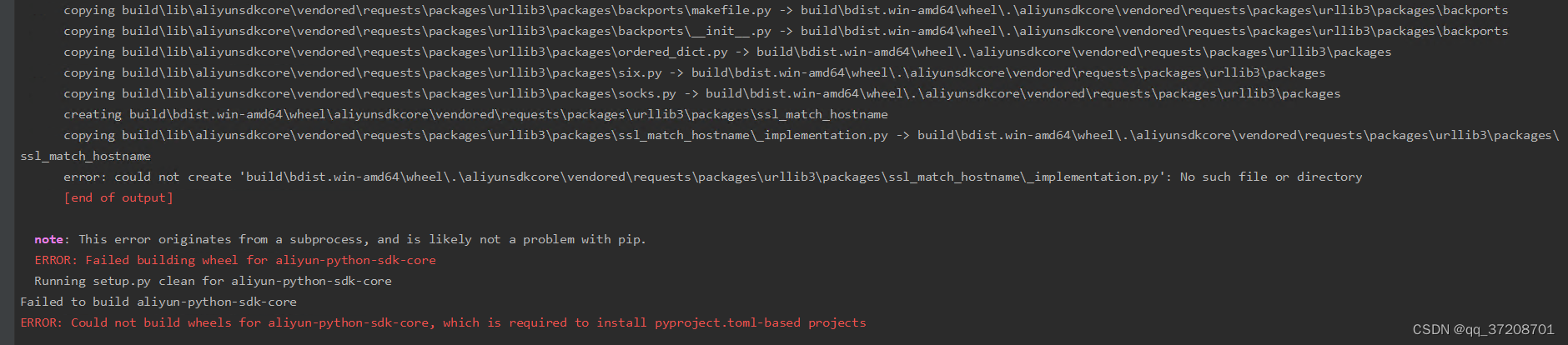 ERROR: Could not build wheels for aliyun-python-sdk-core, which is required to install pyproject.tom 路径下的变量 LongPathsEnabled, 将其置为 1即可.文件夹名字太长的原因。