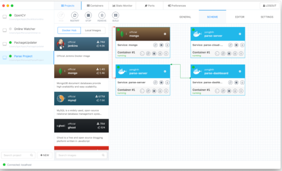 - 可以把常用的操作组织成一个项目,通过项目的方式来检查容器状态,以图形化的方式管理。