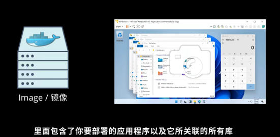 你可以把它理解成一个虚拟机的快照(Snapshot),里面包含了你要部署的应用程序以及它所关联的所有库。