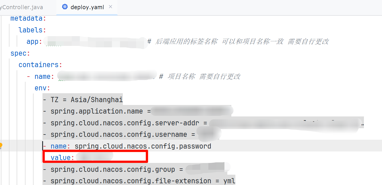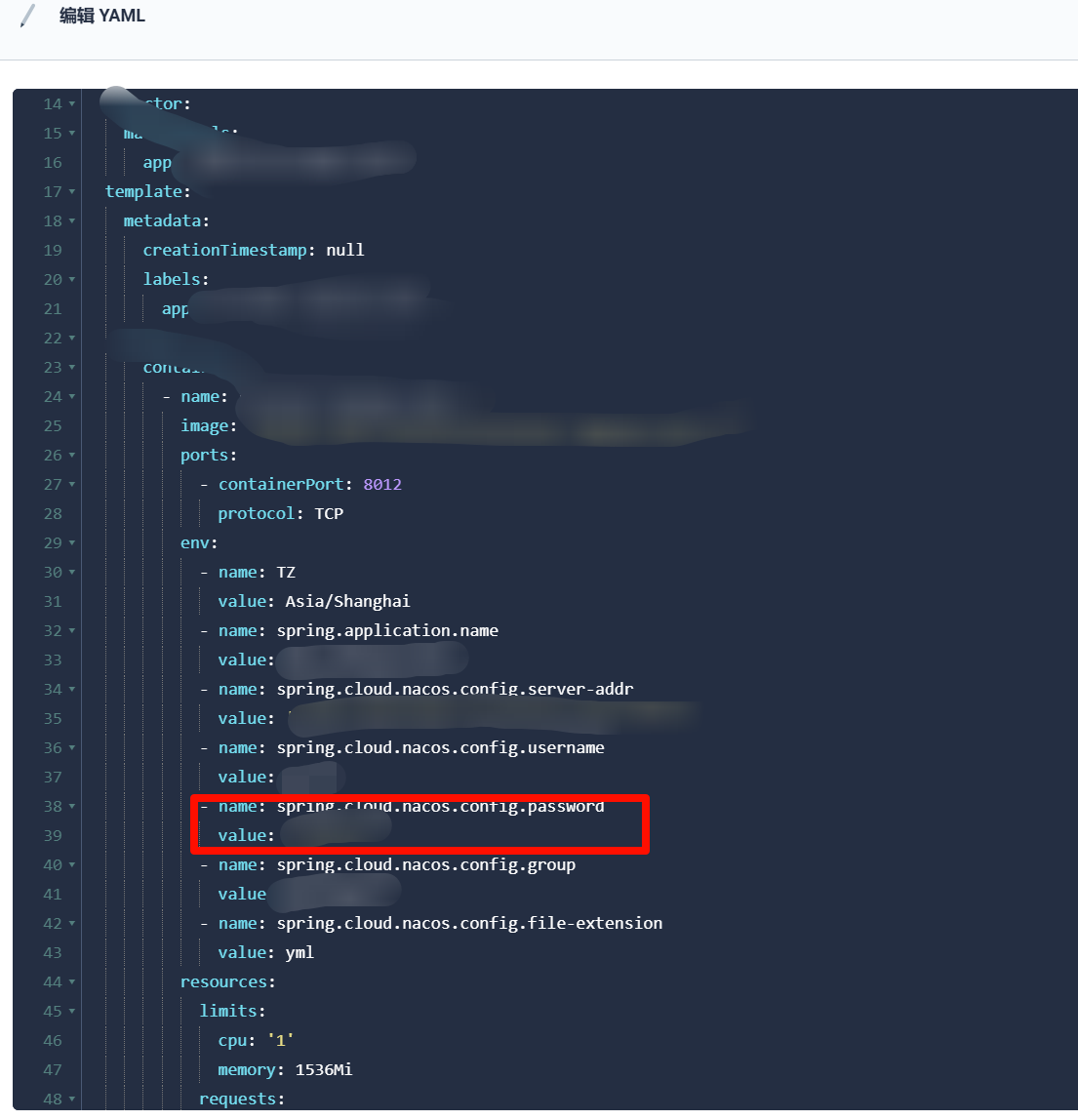 点击这个编辑YAML,发现password没有修改成最新的,于是在这里修改了