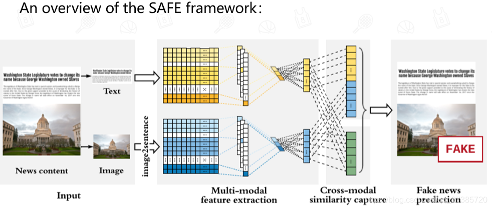 本文介绍了SAFE模型在多模态假新闻检测中的应用,该模型结合文本和视觉信息,通过跨模式相似性提取和独立的假新闻预测来检测假新闻。在PolitiFact和GossipCop数据集上的实验表明,SAFE模型在准确性与F1分数上优于其他基线方法。