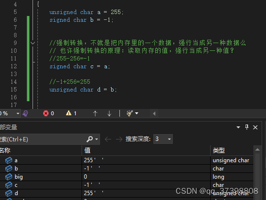 如果当成无符号数,读出255