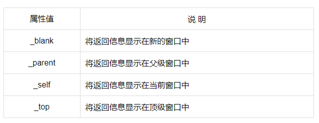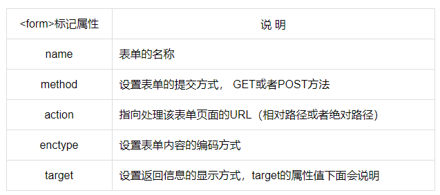 <form name= "form_name" method="method" action="url" enctype="value" target="target_win"> // 插入一些表单元素 <form>