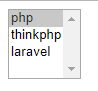 <select name="lag" id="lag" multiple> <option value="0" selected>php</option> <option value="1">thinkphp</option> <option value="2">laravel</option> </select>