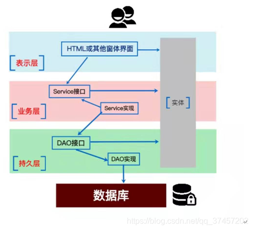 基础学习的时候采用的是,表示层、持久层、业务层: